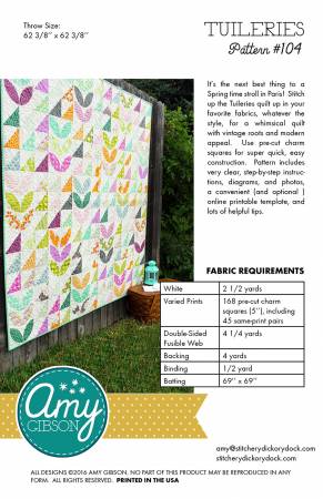 It’s the next best thing to a Springtime stroll in Paris! Stitch up the Tuileries quilt in your favorite fabrics, whatever the style, for a whimsical quilt with vintage roots and modern appeal. Use pre-cut charm squares for super quick, easy construction in two functional sizes- 58-1/2in square or 86-1/2in x 100-1/2in. The beautiful 12-page full color pattern booklet includes clear, step-by-step instructions, diagrams, and helpful tips.