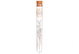 Twenty high quality Japanese pins within a labeled, clear, cork topped tube. These glass head pins come in a variety of colors. Pins are nickel-plated steel, warp resistant and run smoothly through fabric. Includes 20 pins.