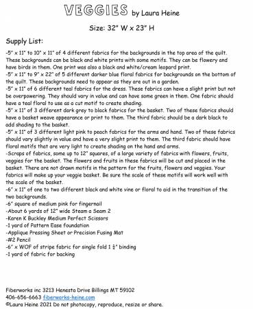 Veggeis Collage Pattern by Laura Heine. This pattern includes coloured photos with step by step collage instructions to make this tastefully wonderful quilt. Finished size 32″x23″.