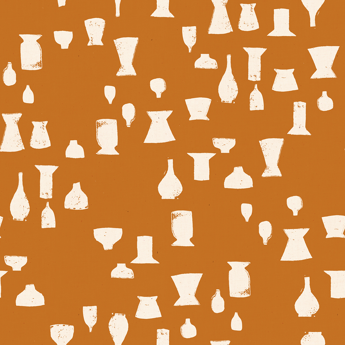Vessel by Alexia Abegg for Ruby Star Society. Alexia was inspired by making pottery – the process of decorating the pots, creating shapes and painting motifs, the colours of the glazes and the rich but subdued colours of natural clay.