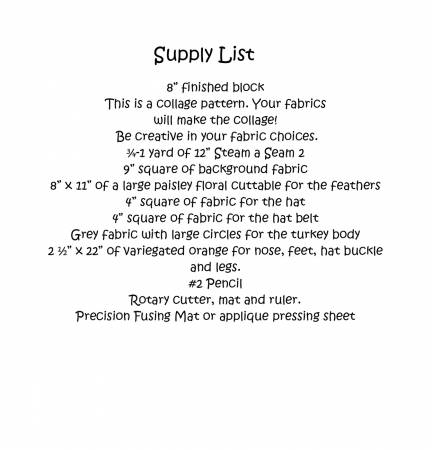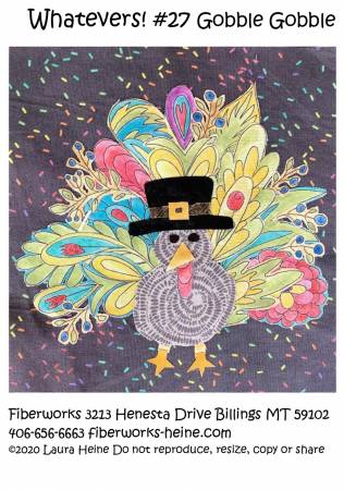 Whatevers! #27 Gobble Gobble Collage Pattern by Laura Heine Whatevers are 8in collage blocks that you can turn into runners, potholders, tiny quilts or continue making the designs for a large collage quilt! Includes pattern with complete colour photo and instructions.