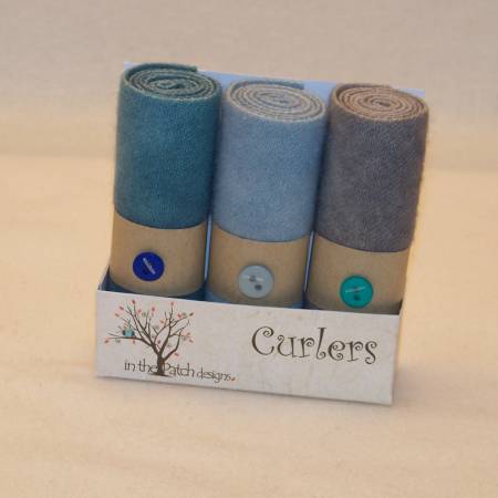 Curlers are 3 pieces of felted wool’s that measure 4in x 16in each, rolled in a box ready to inspire more treasured projects. Hand Over Dyed Wool by In The Patch Designs Collection.