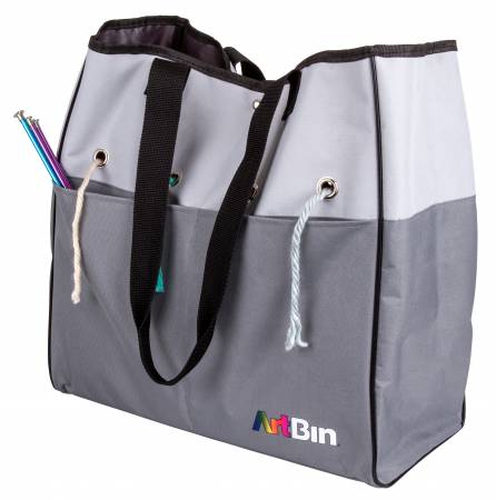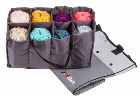 The Yarn Tote features a lift out yarn organizer which hold 8 skiens of yarn. The yarn organizers individual compartments along large grommets featured on the tote, work to keep yarn tangle free. The roomy size of this tote bag allows for storage of works in progress. Two large exterior pockets are great for storing patterns, hooks and needles. The Yarn Tote is constructed using durable 400D poly canvas, making this an ideal travel bag for knitters and crocheters.